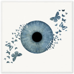 Fügen Sie Ihrem Wohnraum einen Hauch von Eleganz hinzu mit Das Butterfly Custom Iris White gerahmte Poster. Dieses exquisite Poster feiert die natürliche Schönheit Ihrer Iris und verwandelt es in ein faszinierendes Kunstwerk, das die Raffinesse ausstrahlt.